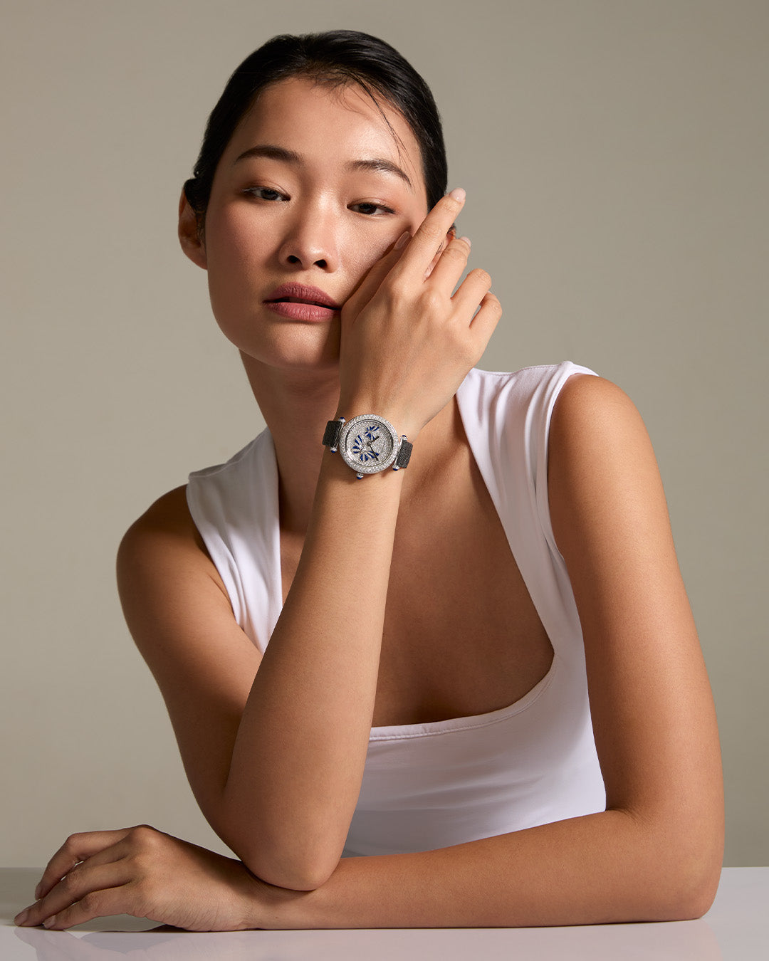 魅惑的な蝶に象徴される女性美の永遠の魅力にオマージュを捧げたウォッチ。卓越した存在感、強い個性、個性的な美しさを持つ女性にちなんで名付けられたこの時計は、すべての女性に力を与え、その個性を際立たせることを目的としています。この魅惑的なタイムピースには、優美なバタフライのデザインがあしらわれ、その中心にはマーキースダイヤモンドが繊細に配置され、その周囲には目に見えないほどのプレシャスストーンがセッティングされています。