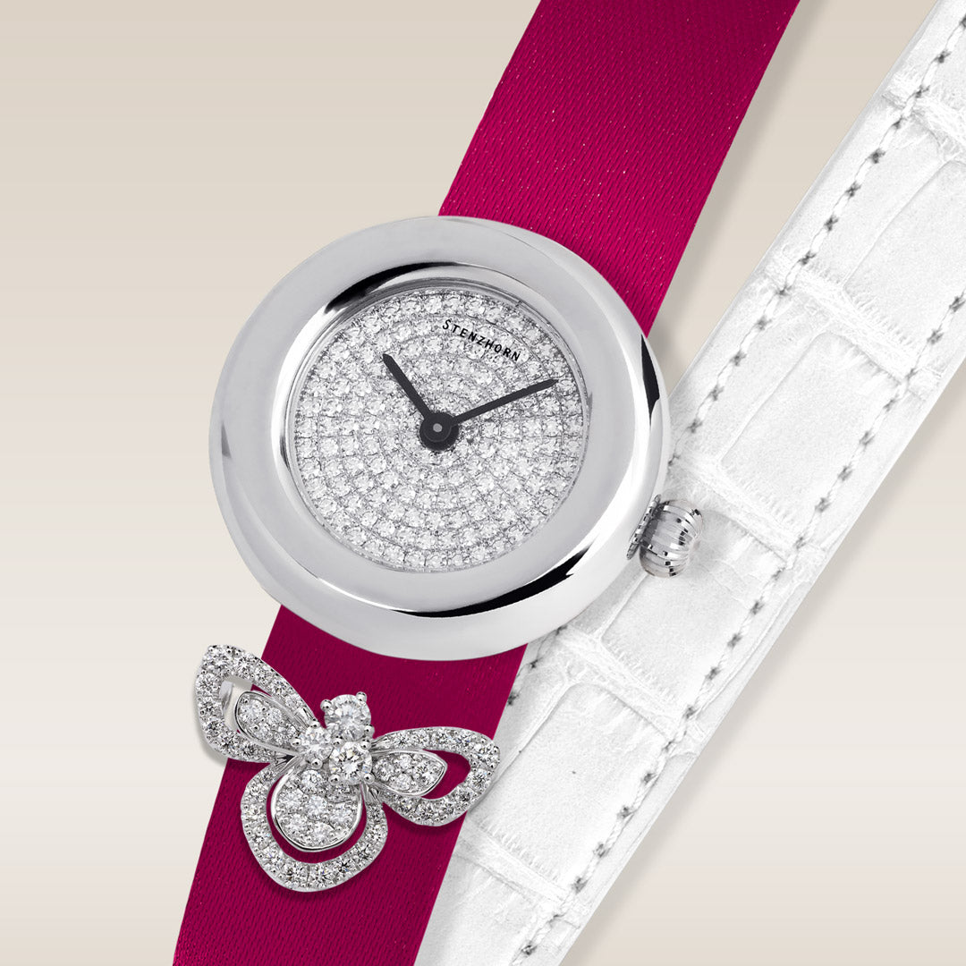 Die Juwelenuhren von Stenzhorn sind die perfekte Verbindung von exquisitem Schmuck und raffinierten Zeitmessern. Sie spiegeln die Leidenschaft für Kunst und Schönheit wider. Jede Uhr wird mit höchster Präzision und Hingabe hergestellt und ist der modernen, selbstbewussten Frau mit exquisitem und einzigartigem Geschmack gewidmet. In der traditionsreichen Werkstatt von Stenzhorn wird jeder Zeitmesser von erfahrenen Handwerkern nach den höchsten Standardssorgfältig zusammengesetzt und in funkelnde Schmuchstücke verwandelt, die die Zeit anzeigen.